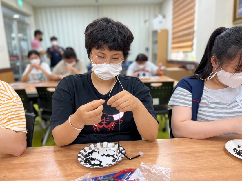 내 용 : 직무체험(비즈블럭) 프로그램 진행으로, 목걸이 및 팔찌를 만드는 시간을 가졌습니다.