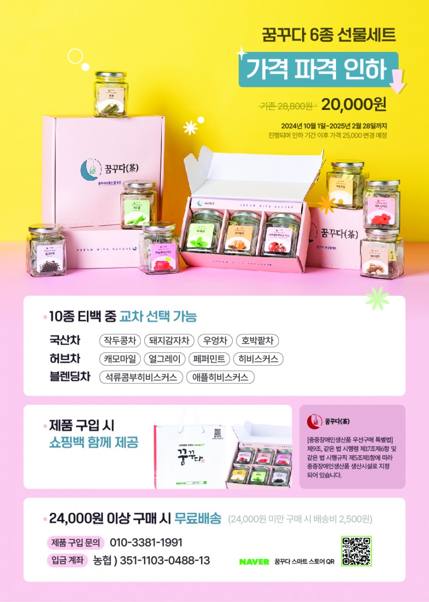 광주카리타스보호작업장에서 제조 및 판매하고 있는 꿈꾸다(茶)에서 선물세트 할인행사를 진행하고 있습니다.